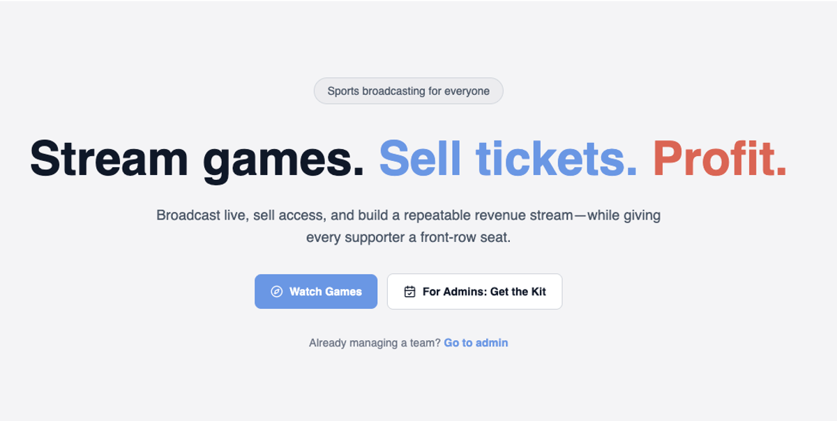 A club sports streaming, ticketing and team management platform, built from the ground up for a great user experience. Built using Svelte and Mux.